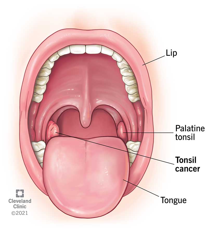 Your tonsils are two oval-shaped pads in the back of your mouth that are part of your bodys germ-fighting immune system. The tonsils contain lymphocytes that may have killed the cancer cells. Blood in your saliva.
